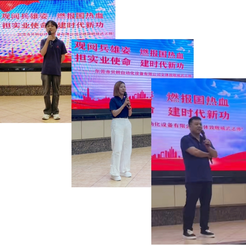 閱兵結(jié)束,多位同事踴躍發(fā)言紛紛上臺(tái)分享了觀(guān)后感, 共同的聲音是:何其有幸,生于華夏。真理只在大炮的射程之內(nèi),作為貝朗自動(dòng)化的一員,我們或許不在閱兵場(chǎng)上,但我們同樣站在國(guó)家發(fā)展的重要戰(zhàn)場(chǎng)上——制造業(yè)的戰(zhàn)場(chǎng)。我們生產(chǎn)的每一臺(tái)線(xiàn)材成型機(jī),都是中國(guó)工業(yè)基礎(chǔ)的一部分;我們突破的每一項(xiàng)技術(shù),都是在為“中國(guó)制造”向“中國(guó)智造”轉(zhuǎn)型升級(jí)貢獻(xiàn)實(shí)實(shí)在在的力量。