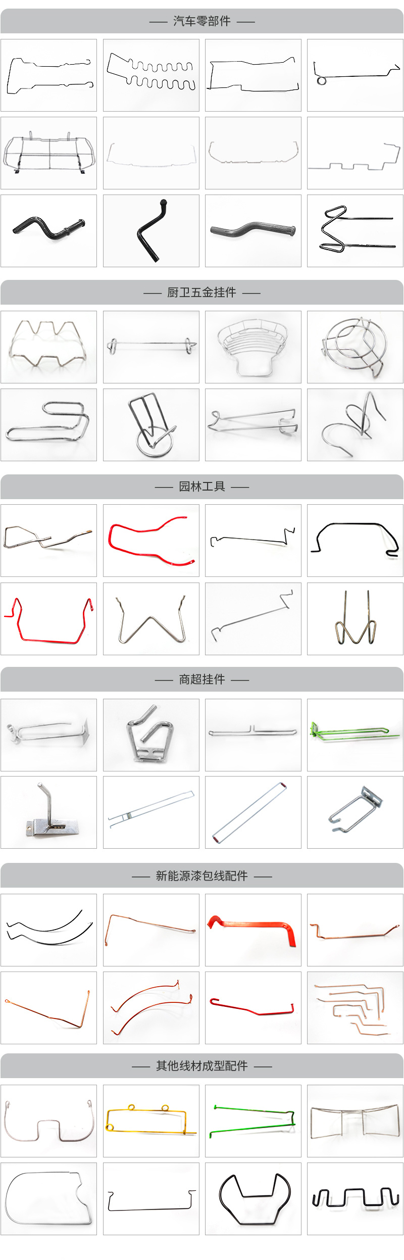 7.適用于生產:汽車座椅骨架,遮陽板骨架,汽車門鎖拉桿,工藝品金屬線,廚具餐具支架,倉儲籠超市手推車,超市貨架等線材成型產品