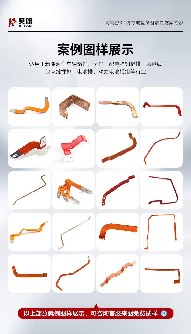 8、該設備是專門針對銅、鋁排自動折彎成型的一款設備,適用于生產(chǎn):新能源汽車銅鋁排、母排、配電箱銅鋁排、