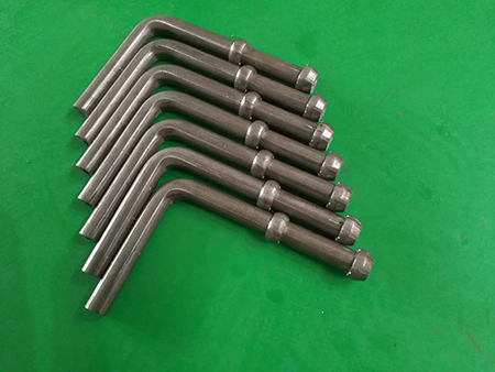 是汽車排氣管掛鉤,也叫消聲器的吊掛,是由墩頭折彎組合機(jī)做出來(lái)的。